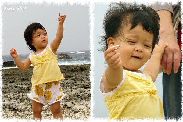 小羽還開心的撿到人生中的第一個貝殼,開心的炫耀著