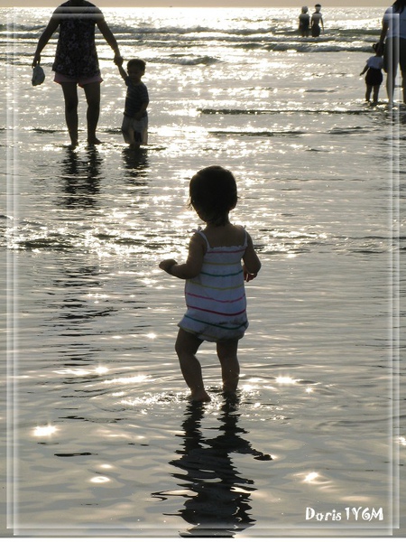 我們一樣把小羽放下去「摸蛤仔、兼洗褲」,想當然耳,硬是曬黑黑的回來。