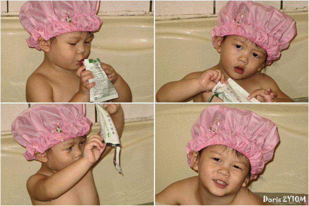 夏天泡澡,分明就是要玩水,有一次還叫我丟游泳圈給她